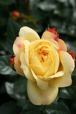 Die Rose „Romantische Straße“ ist eine neue Sorte des renommierten Züchters „Rosen Tantau“. Die kräftig gelben, am Rand rot geflammten Blütenblätter bilden dicht gefüllte Blüten, die zu mehreren am Ende der Triebe stehen. Sie vereinen Winterhärte und Rosengesundheit mit einem intensiven Duft. Ihre üppigen Blüten sind umrahmt von kräftigem, dunkelgrün glänzendem Laub. Sie ist mit 70 bis 90 Zentimeter Wuchshöhe eine ideale Beetrose, ziert aber auch im Kübel Balkone oder Terrassen.