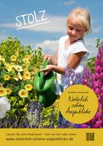 Rechtzeitig zum Start der Beet-und Balkonsaison gibt es im Rahmen der Kampagne „Natürlich schöne Augenblicke“ zwei neue Plakatmotive. Die Druckvorlagen finden sich im passwortgeschützen Bereich der Website www.natuerlich-schoene-augenblicke.de. Das Passwort lautet „BlumenL1ebe“. Zudem erhalten Einzelhändler das Plakatmotiv „Stolz“ ab Mitte April kostenlos in allen der Vereinigung Deutscher Blumengroßmärkte (VDB) angeschlossenen Blumengroßmärkten. Damit haben über 15.000 Einzelhandelsbetriebe von Stuttgart bis Hamburg die Möglichkeit, mit dem Motiv zu werben und damit die Öffentlichkeit zu erreichen.