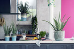 Darüber hinaus hat Aloe eine luftreinigende Wirkung. Die Auswahl im Aloe-Sortiment wird dank des anhaltenden Trends zu sukkulenten Pflanzen immer größer. Aloe vera ist dabei die bekannteste Art. Ihre gezähnten grünblauen Blätter bilden die Basis einer Rosette.