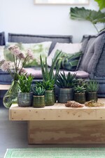 Aloe vera ist die diesjährige „Zimmerpflanze des Monats“ im August. Sie lassen sich ausgezeichnet Kakteen und andere Fettpflanzen wie Agave, Echeveria, Crassula, Haworthia und Senecio kombinieren, da sie ähnliche Pflegeansprüche haben.