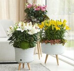 Die Basis sollte einfach gehalten werden (Topflilien sehen in schwarzen oder weißen Töpfen richtig toll aus) und in verschiedenen Höhen präsentiert werden, um eine lebendige Wirkung zu erzielen. Leuchtende Farben und Pastelltöne getrennt voneinander gruppieren und weiße Lilien als verbindenden Faktor verwenden, damit alles eine Einheit bildet. Da die Pflanzen den Konsumenten im Knospenstadium angeboten werden, kann begleitendes Bildmaterial, auf dem die Topflilie blüht, zum Kauf animieren.