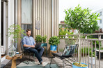 Für die Präsentation wird empfohlen, ein Balkonsituation mit Lorbeer und Bistro-Set zu inszenieren. Den Eindruck eines halboffenen Balkons erzeugt man mit einer Lorbeerhecke und verschiedenen Formen des Lorbeers in Töpfen. Das Dekor sollte eher nüchtern sein, damit die Pflanze mit ihren Blättern im Vordergrund steht. Ein zusätzliches Regal mit Kräutern unterstreicht die Bedeutung des Lorbeers für die Küche.