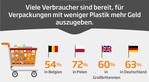Für die Befragten in Belgien stand der Preis bei der Verpackung im Vordergrund. So wären dort nur knapp über die Hälfte (54 %) bereit, mehr für plastikarme Verpackung zu zahlen, wohingegen in Polen die meisten (72 %) einen höheren Preis für weniger Plastik in ihrer Verpackung akzeptieren würden. Die britischen und deutschen Verbraucher lagen mit 60 % bzw. 63 % im Durchschnitt der Umfrage.
