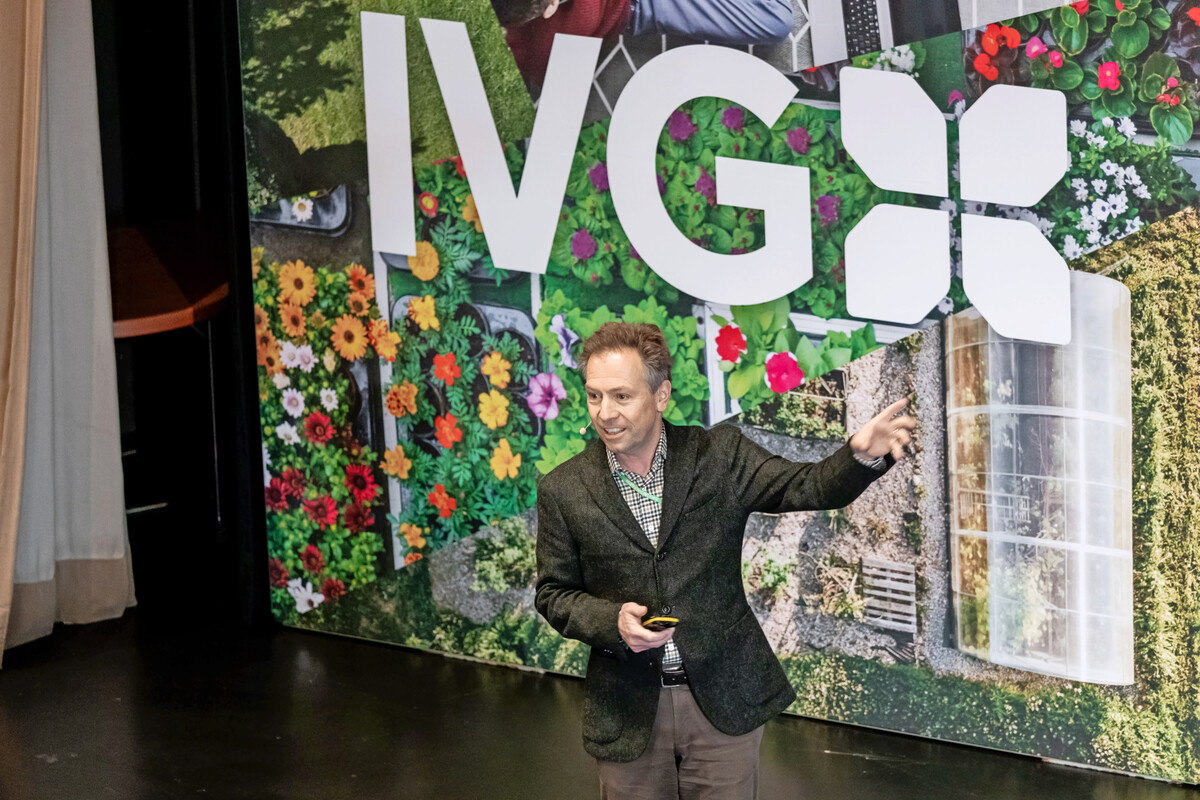 Passend zum Motto der diesjährigen Veranstaltung hatte der IVG den Zukunftsforscher Matthias Horx als Keynote-Speaker eingeladen. Er schaute in seinem Vortrag auf die Zukunft der Gartenbranche und ihre Trends. Dabei ging er auf die Entwicklungen des Gartens, der Gesellschaft und der Gewohnheiten der Menschen ein. „Der Garten ist gewissermaßen ein Gegentrend auf viele negative Entwicklungen in der Gesellschaft“, so Horx. Er sei Rückzugs- und Erholungsort. Er schaffe Berührungspunkte mit der Natur. „Gärten erzeugen neue Zivilisationsformen und radikale Zuversicht.“ Jede Gärtnerin und jeder Gärtner müsse resilient sein und in die Zukunft planen. Schließlich würden Gärten angelegt, um sich zu entwickeln, schöner zu werden oder eine Ernte einfahren zu können.