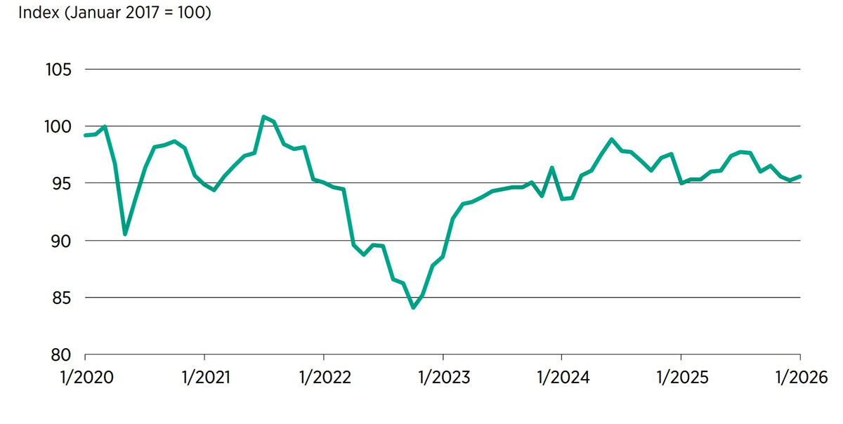 Im Januar 2026 weist das HDE-Konsumbarometer eine Höhe von 95,54 Punkte auf (siehe Abbildung). Gegenüber dem Vormonat bedeutet dies ein Anstieg um 0,3 Punkte, sodass der Indikator nahezu auf dem Niveau des Vorvormonats liegt. Der negative Trend der vergangenen beiden Monate hält damit nicht weiter an. Auch ist die Verbraucherstimmung etwas besser als vor einem Jahr. Der Wert des HDE-Konsumbarometer beträgt aktuell 0,55 Punkte mehr als im Vorjahresmonat.