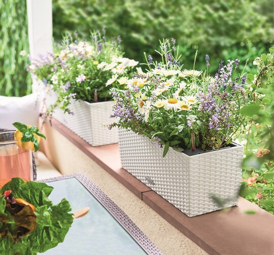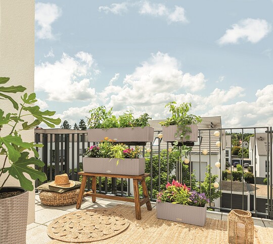 Pflanzen dürfen im Frühling und Sommer auf keinem Balkon fehlen. Sie verbessern das Wohlbefinden, schaffen Lebensraum für Insekten und verschönern den Außenbereich. Dabei kommt es auf die Auswahl der Pflanzen genauso an, wie auf das Gefäß. BALCONERA von LECHUZA überzeugt mit einem integrierten Bewässerungssystem, das Blumen und Kräuter zuverlässig mit Wasser und Nährstoffen versorgt. Selbst an heißen Sommertagen entfällt das mehrmalige tägliche Gießen – mehr Zeit also, um die Pflanzenpracht zu genießen.