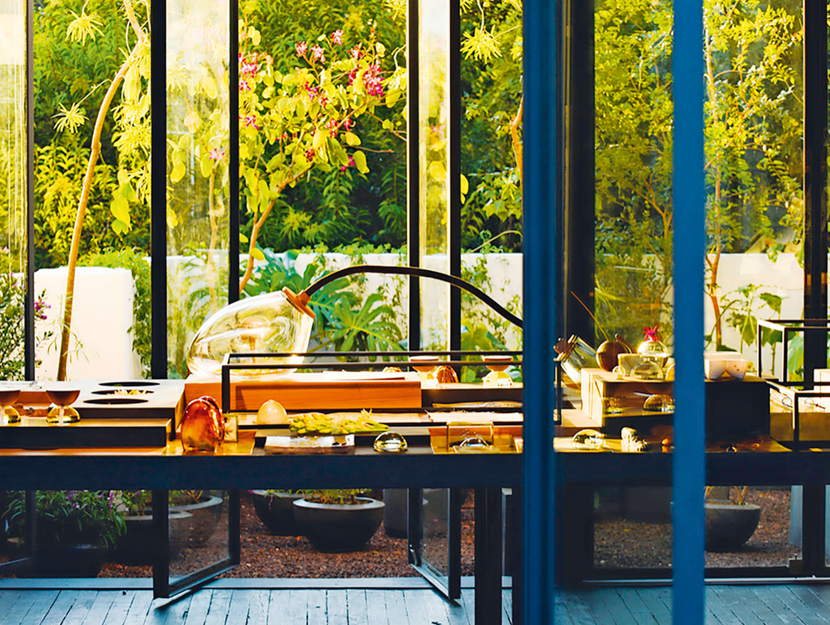 Rohes Holz, Granit, handgefertigte Oberflächen und eine reduzierte, natürliche Farbpalette lassen den runden Store mit bodentiefen Fenstern beinahe museal-meditativ wirken. Pflanzen sind keine Dekoration, sondern räumliche Akteure. Licht fällt weich und gefiltert durch die umliegenden Bäume ein, Düfte werden Teil des Gesamterlebnisses. Xinú spricht alle Sinne an und übersetzt die Markenphilosophie – naturbasierte Parfümerie – konsequent in Architektur.