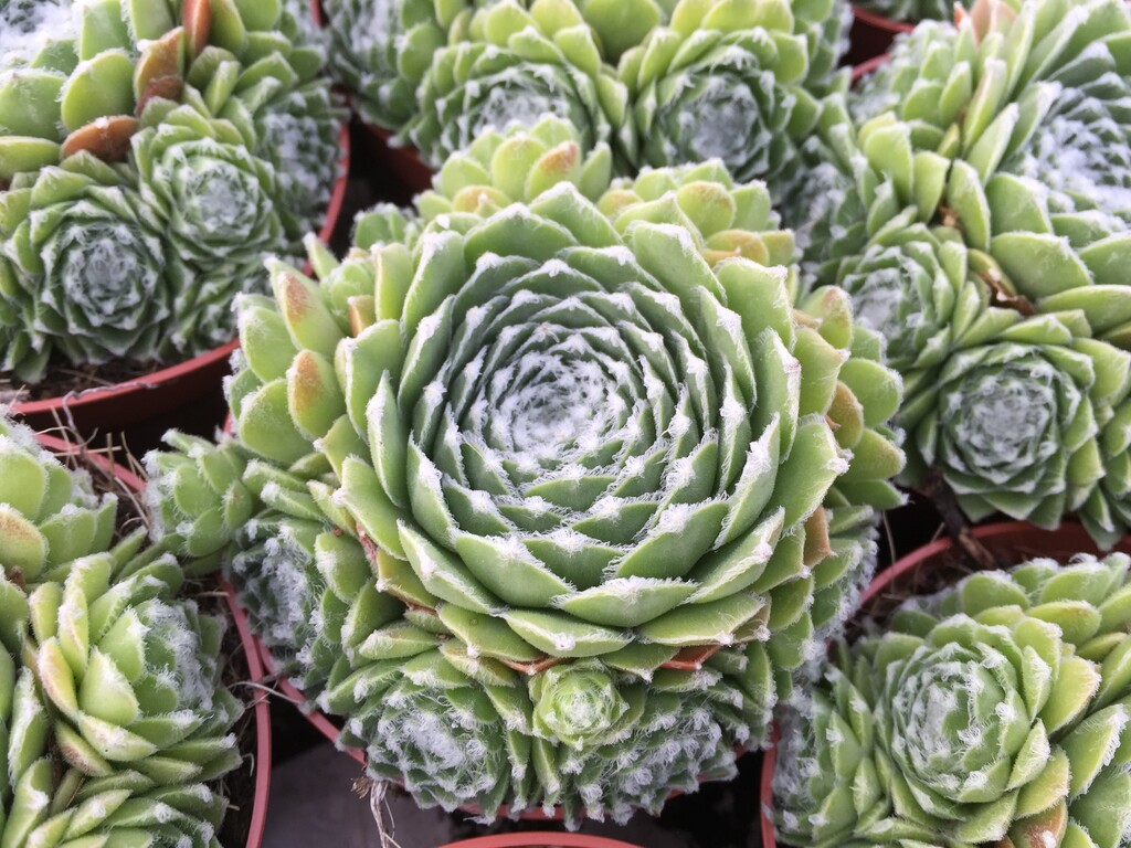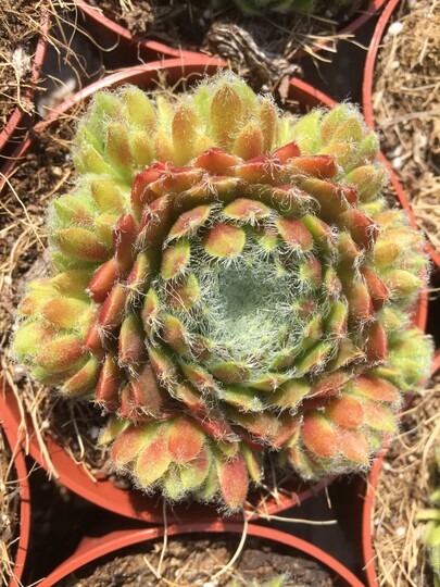 Ihrer zartgrünen Färbung verdankt Pastelis ihren Namen. Diese hellgrüne Sempervivum ist weiß behaart und zeichnet sich durch braune Blattpunkte aus.