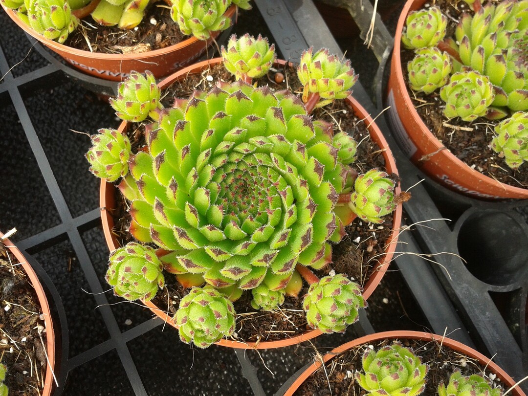 Nurani erkennt man an ihrer hellgrün-grauen Rosette mit leicht weiß behaarten Rändern. Diese Sempervivum trägt ebenfalls mehrere Ausläufer.