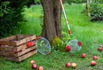 Neben dem Auffangkorb für Früchte bis Apfelgröße (3,5 – 10 cm) gibt es auch noch einen, neuen kleineren Zubehör-Fangkorb für Obst bis Nussgröße (2 - 4,5 cm). Der zweite Sammelkorb besticht durch Drähte mit besonders geringem Abstand, sodass er für das Aufsammeln von kleinem Gut bestens geeignet ist.