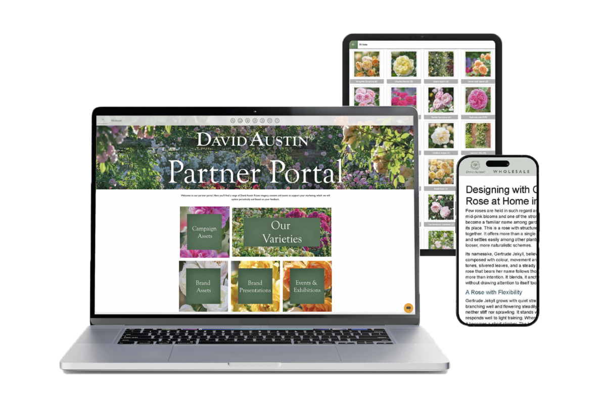 EU-Partnerportal für On-Demand-Marken- und Marketingressourcen: David Austin Roses, bekannter Züchter englischer Rosen, hat ein Partnerportal ins Leben gerufen, um lizenzierte Produzenten und Wiederverkäufer bei der Vermarktung der ikonischen Rosen zu unterstützen.