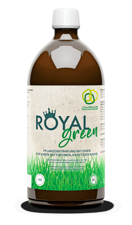 Ein sattgrüner, gesunder Rasen ist die schönste Zierde eines Gartens. Doch vielen Rasenflächen fehlen wichtige Nährstoffe wie Eisen – sie vergilben dadurch und verlieren an Widerstandskraft. Oft greifen GärtnerInnen dann zu chemischen Düngern, die aber das Bodenleben schädigen oder sogar gesundheitsgefährdend sein können. Das muss nicht sein. Mit „Royal Green“ bringt Multikraft nun erstmals ein Kombi-Produkt auf den Markt, das dank probiotischer Wirkung, kombiniert mit dem Spurenelement Eisen, das Phytobiom (Mikrobiom von Pflanzen) stärkt und mit Nährstoffen versorgt. Für ein kräftiges Wachstum und sattes Grün – ganz ohne chemische Dünger. Royal Green ist zudem biozertifiziert.