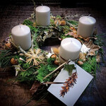 Wir bieten komplett haltbare Adventsfloristik an. Dekorieren Wollkränze, arbeiten mit ausgefallenen Seidenblumen, knalligen Glitzerzweigen, gefärbten Materialien wie Trockenblumen, aber auch eingefärbten frischem Eucalyptus, Skimmia. Frisches Grün verarbeiten wir auch, gerne aber kombiniert mit Trockenblumen und dem eingefärbten frischen Beiwerk.