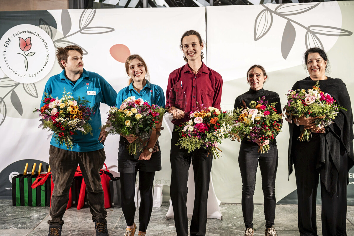 Den zweiten Platz belegte Annette Sippl von 1A Blumen Halbig in Nürnberg, die als Lokalmatadorin mit Kreativität und Detailgenauigkeit überzeugte. Jan Halbig, ebenfalls von 1A Blumen Halbig in Nürnberg sicherte sich den dritten Rang. Doch auch die weiteren Teilnehmerinnen beeindruckten: Tamara Wakonig von der Blumenoase in Dorfen und Jana Carl von Hauke Gartenhaus in Erlangen bereicherten die Meisterschaft mit innovativen Ideen, großem Engagement und einer jeweils unverwechselbaren floralen Handschrift. Gemeinsam zeigten alle fünf Floristinnen und Floristen, wie vielfältig und zukunftsweisend die Branche aufgestellt ist.