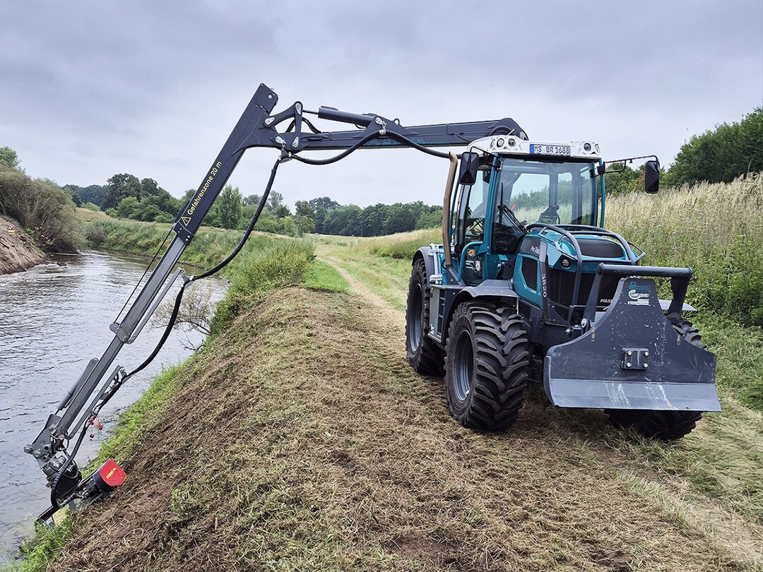 Kein Umbau, sondern von Grund auf für Forst und Landschaftspflege entwickelt. Ob beim Ausmulchen von Fluss- und Bachläufen oder beim Einsatz mit einem Fällgreifer – er überzeugt mit Leistung und Präzision Die XXL-Kabine mit drehbarem Bedienerstand bietet höchsten Komfort.