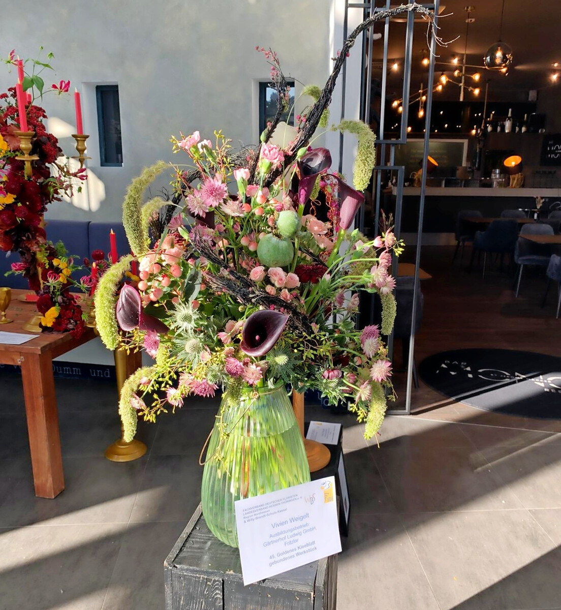 von FDF Hessen-Thüringen/Redaktion erschienen am 17.10.2025Der FDF-Landesverband Hessen-Thüringen hat am 1. Oktober zum 45. Mal den Nachwuchswettbewerb „Goldenes Kleeblatt“ ausgerichtet. Federführend für die Organisation verantwortlich war die Präsidentin des Landesverbands, Kathrin Appel-Göllner. Austragungsort war erneut das Cineplex in Baunatal, wo sechs Auszubildende im dritten Lehrjahr ihre floristischen Fähigkeiten unter Beweis stellten.