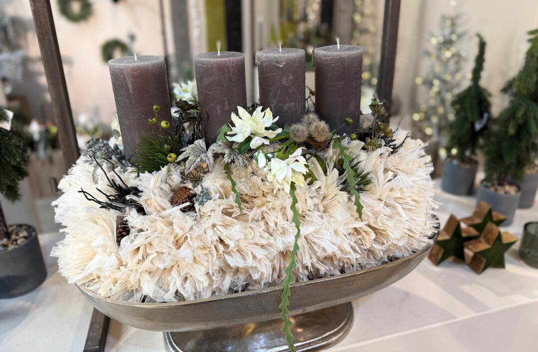 Winterlich-warme Weihnachtsideen zeigte Anja Ersing am letzten Septemberwochenende beim Floristenbedarfshändler Willeke in Büren. In dieser Bildergalerie zeigen wir eine kleine Auswahl der entstandenen Werkstücke.