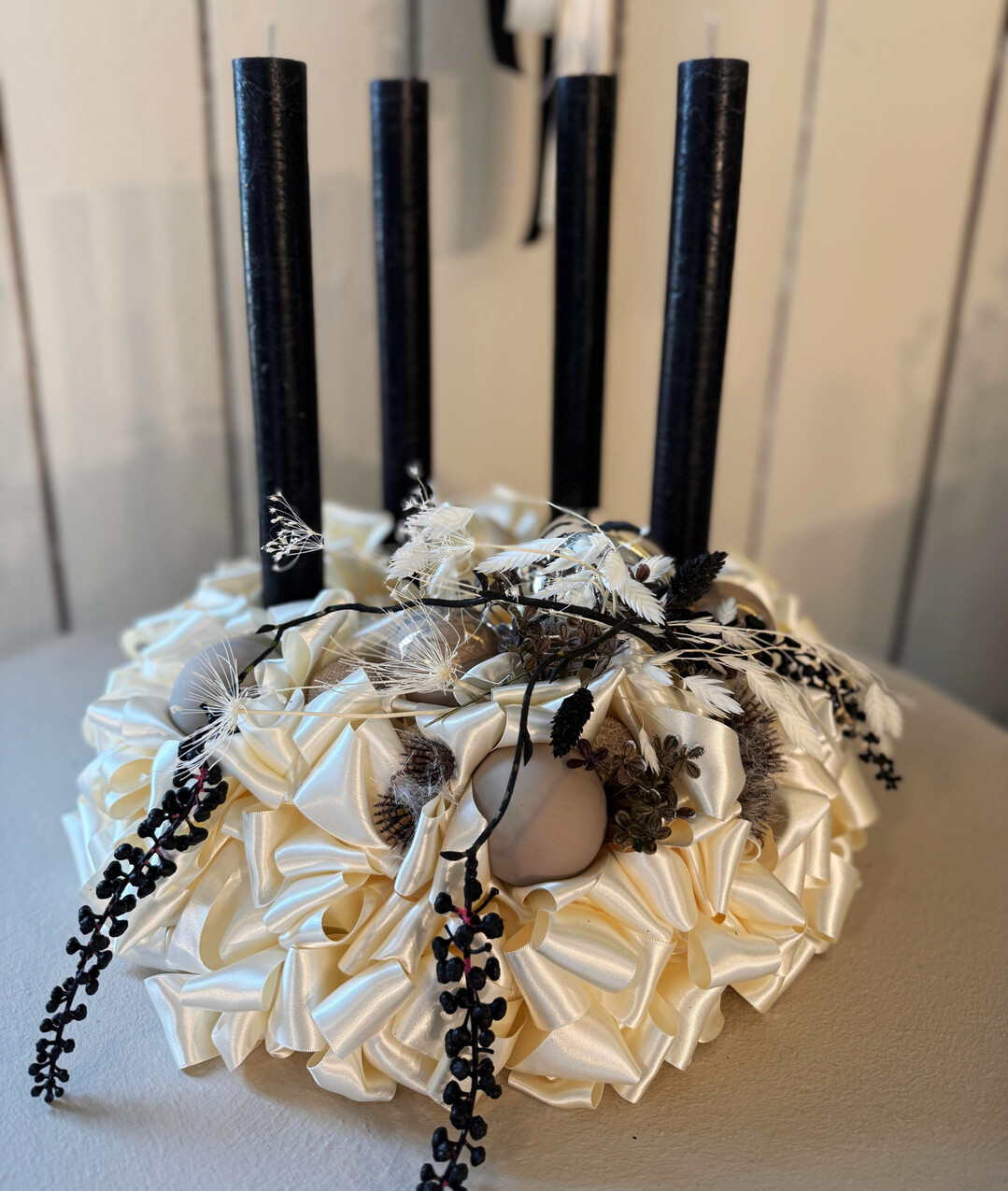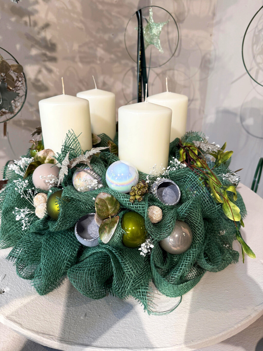 von Redaktion florieren! erschienen am 23.10.2025Die Floristmeisterin Anja Ersing, Florale Werkstatt in Ludwigsburg, war am 27. und 28. September beim Floristenbedarfshändler Willeke in Büren zu Gast. Gemeinsam mit den zwei Floristinnen aus dem Willeke-Team, Birgit Unterhalt und Claudia Witthaut, fertigte sie verschiedene Werkstücke für die Gedenktage und für Advent und Weihnachten.