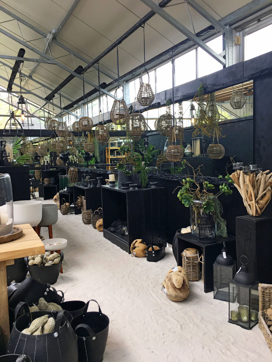 Eine belgische Gärtnerei zeigt hier ein cooles modernes Design im Gewächshaus. Durch die reduzierte Farb- und  Produktauswahl und die langen Strecken wird eine Reizüberflutung vermieden. © Anne Effelsberg