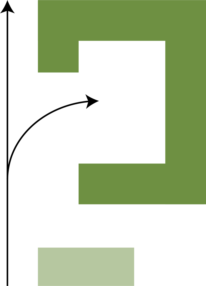 Organische bzw. gerundete oder diagonale  Wegeführungen laden ein zum Schlendern, verlangsamen den Schritt und ermöglichen damit, Einzelheiten besser aufzunehmen. Man „sieht“ also mehr. Das fördert die emotionale Aufnahme