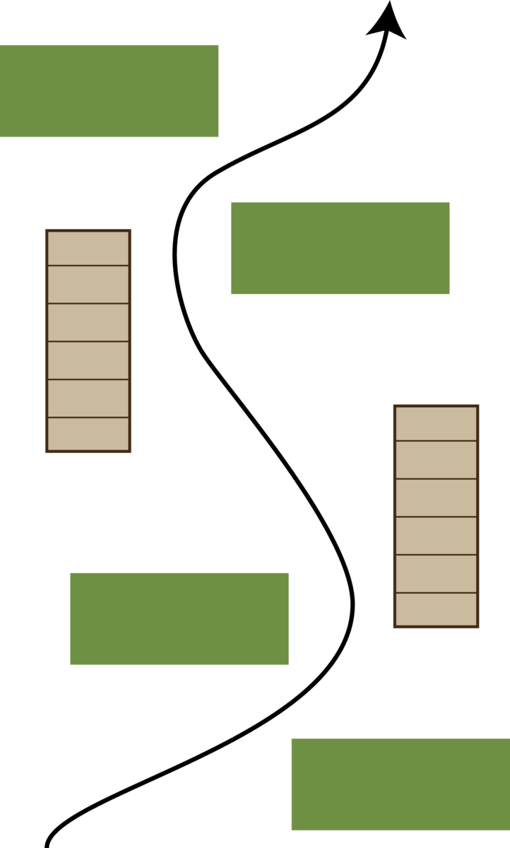 Die Wege erst schaffen und verändern  Raumzonen, nun entsteht das Links und Rechts, das Vorne und Hinten.