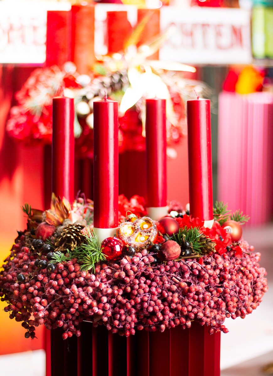 Elegante Kränze, natürliche Arrangements und mutige Farbakzente: Die Adventsausstellung beim Bedarfshändler Strecker in Renningen, die Floristmeisterin Anja Ersing gestaltete, liefert Floristen wertvolle Impulse für ein erfolgreiches Saisongeschäft.