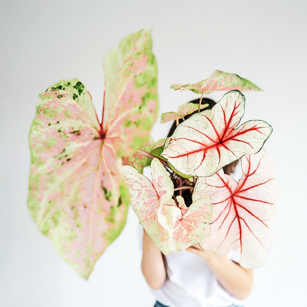 2Krimi & Horror – Spannung in Grün: Wer Krimis oder Horror liest, taucht in düstere, spannende Welten ein. Die folgenden Pflanzen, unterstreichen diese Atmosphäre: Die Kaladie ist durch ihre besondere Färbung und an Adern erinnernde Blattnerven ein außergewöhnlicher Hingucker und setzt die Suche nach blutigen Spuren atmosphärisch in Szene. Aber auch die dunkelvioletten Akzente der Begonie entführen in einen rätselhaften Dschungel aus Verschwörungen und Geheimnissen. Beide Pflanzen sind echte Hingucker und perfekt für eine mystisch-spannungsvolle Präsentation.