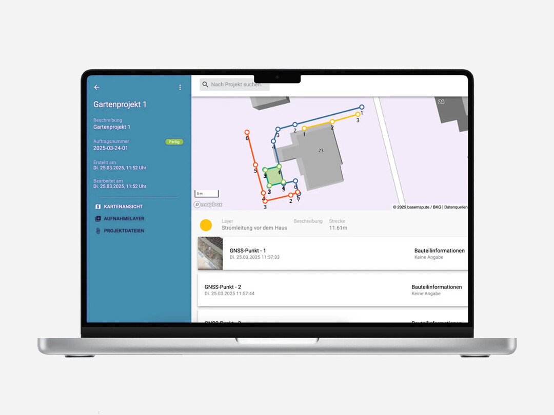 - Präzise Absteckung: Übertragen Sie Ihre Planung via Augmented Reality (AR) direkt auf die Fläche. Kanten, Leitungsverläufe oder Pflanzlöcher werden zentimetergenau visualisiert - ganz ohne Schnurgerüst-Chaos.
