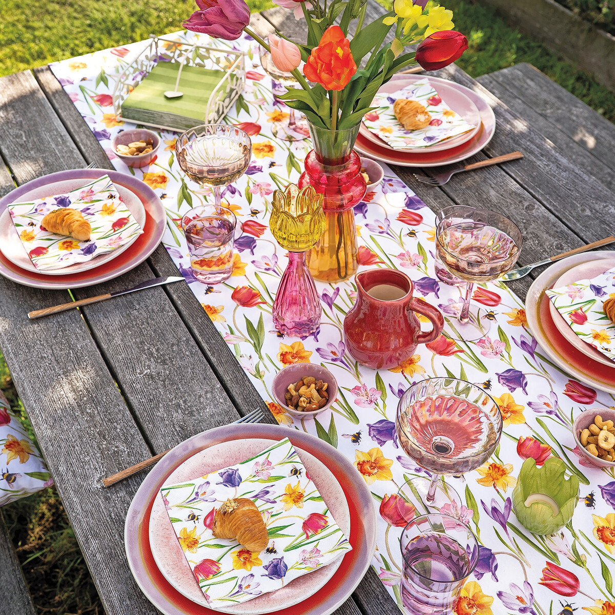Flowers in Spring von Ambiente Europe holt den Frühling ins Zuhause. Die frische Tafeldekor-Kollektion setzt mit floralen Motiven sonnige Akzente auf Tisch und Küche – mit Servietten, Geschirr und passenden Accessoires für drinnen und draußen. Zu finden auf.