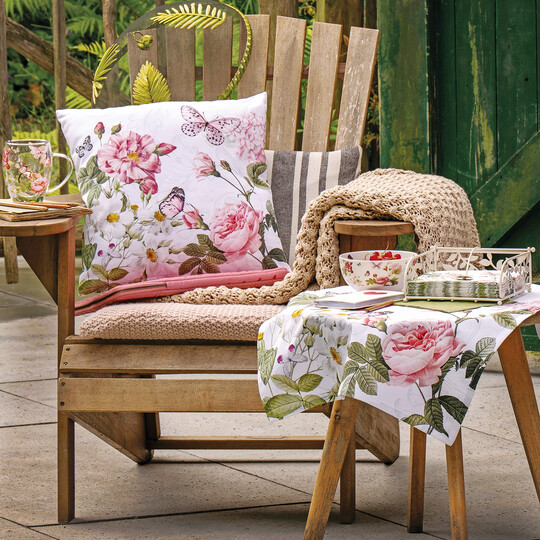 Die Serie Amelia vereint zarte Rosen, weiße Blüten und elegante Schmetterlinge zu einem romantischen, zeitlosen Design. Servietten, Geschirr, Kerzen, Textilien und das dekorative Brotkörbchen schaffen eine harmonische Tischwelt für klassische wie moderne Dekorationen.