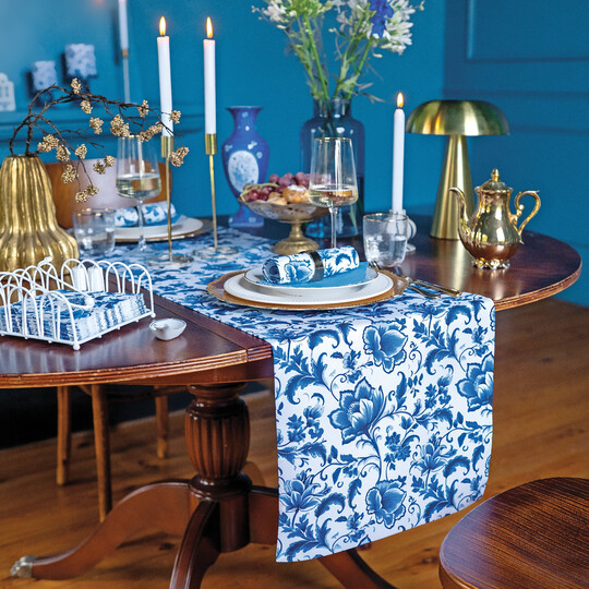 Die Serie Delft Blue Florals zeigt detailreiche blaue Blumen auf strahlend weißem Grund – modern interpretiertes Delfter Porzellan. Servietten, Tassen, Kerzen, Textilien, Kissen und Brotkorb bieten ein rundum stimmiges Tischkonzept für Alltag und besondere Anlässe.