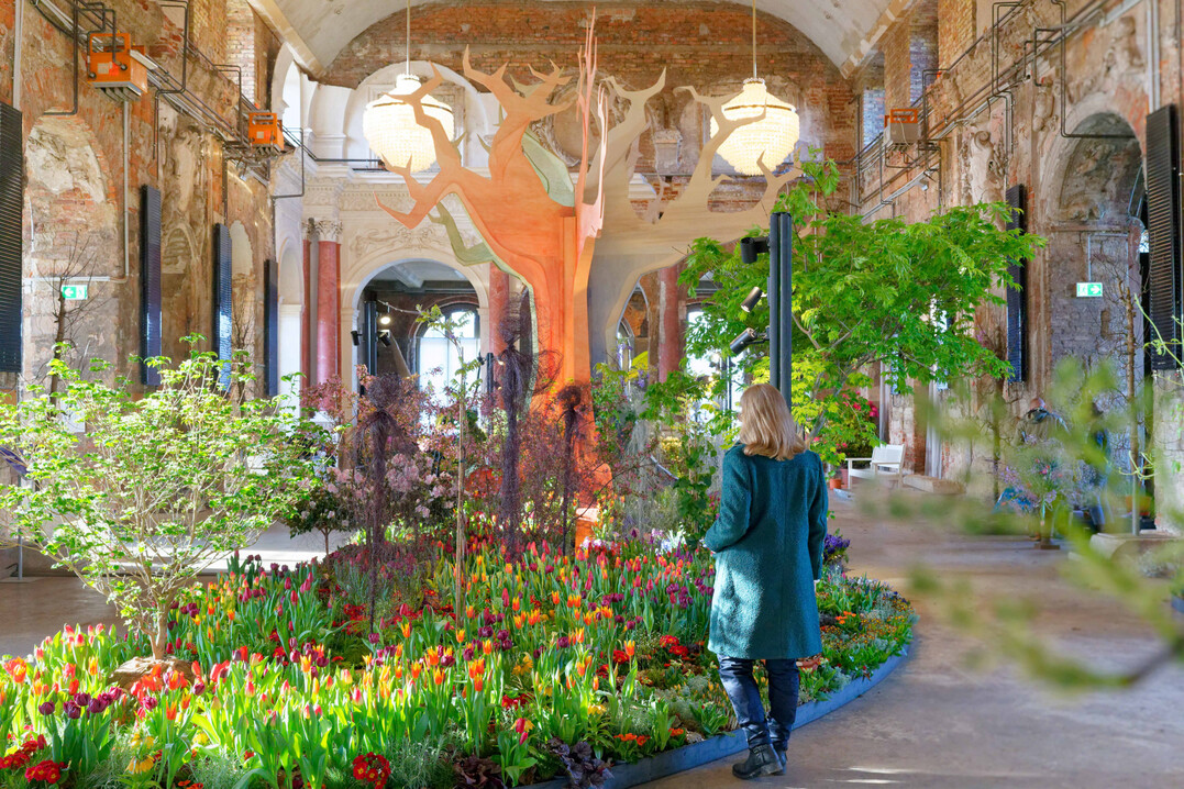 Zudem präsentieren 22 sächsische Gartenbaubetriebe rund 40.000 Pflanzen aus etwa 450 Arten und Sorten – darunter klassische Frühlingsboten wie Tulpen, Hyazinthen und Narzissen, aber auch seltenere Arten. Die floristischen Arbeiten setzen innerhalb dieser üppigen Pflanzenwelt besondere gestalterische Akzente und zeigen, wie Floristik Pflanzen, Formen und Materialien zu ausdrucksstarken Bildern verbinden kann.