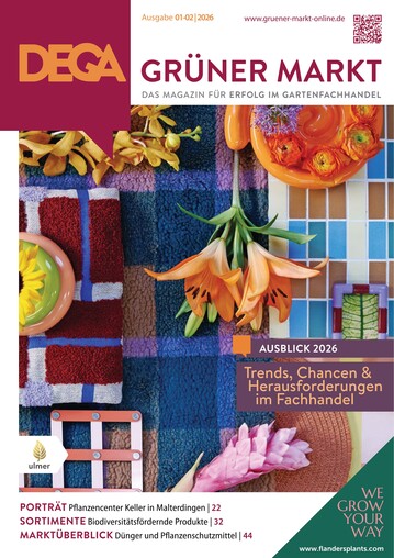 Schwerpunkt: Trends 2026 – worauf sich der Fachhandel im neuen Jahr einstellen muss Porträt: Pflanzencenter Keller in Malterdingen Pflanzeneinkauf: Sortimente steuern, Margen sichern Serie Einkaufsschule: Tipps für den professionellen Einkauf Sortiment: Neuheiten bei Düngern und...
